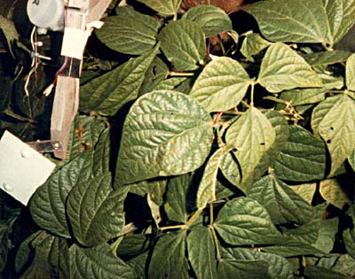 A 0.076 mm. thermocouple (ie. electronic leaf temperature sensor) was attached