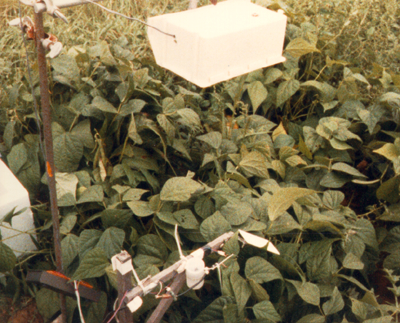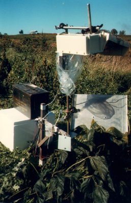 Photographs of setup showing loacations of the cameras, sensors, and data logger before and after frost.
